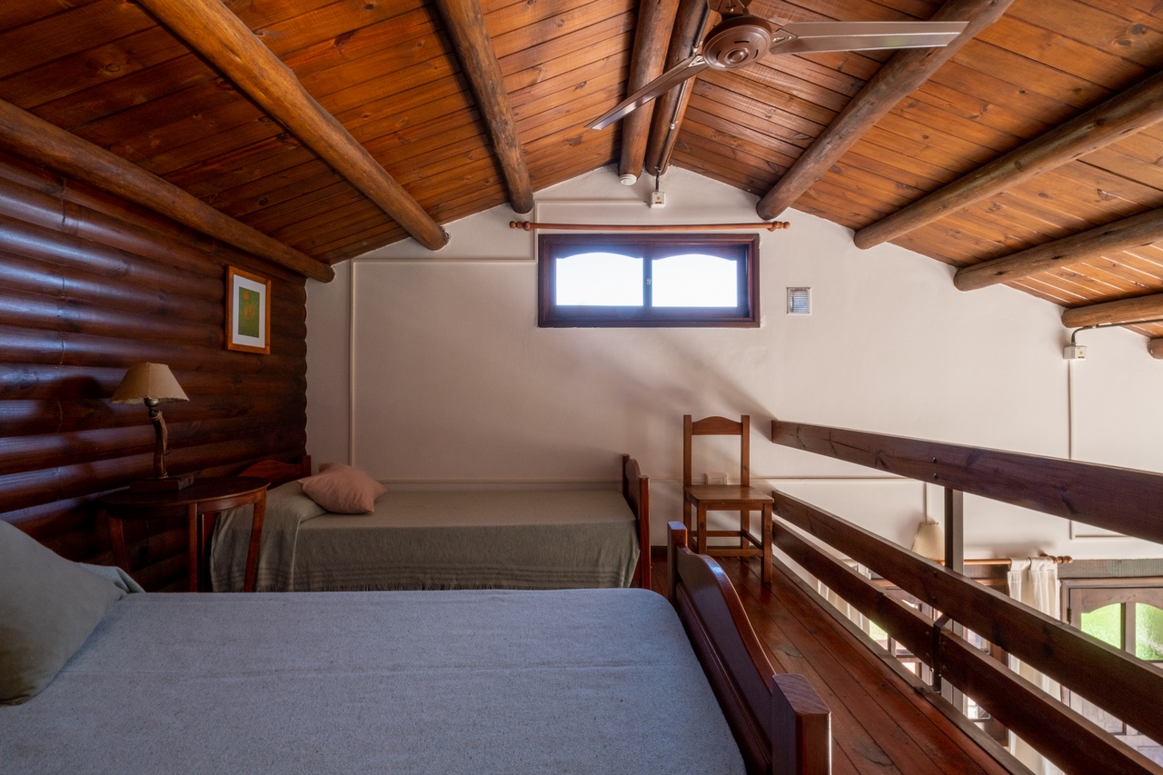 La segunda habitación es un entrepiso de madera, al que se accede por escalera. Cuenta con dos camas individuales y un bonito balcón con vistas al jardín.